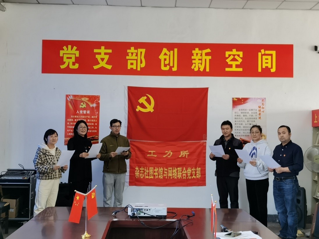 2021年4月9日,雜志社圖書館黨支部全體黨員懷著無比崇敬的心情在黨支部創(chuàng)新空間舉行以“重溫入黨誓詞、革命英烈詩詞”為主題的詩歌朗讀會。首先,黨支部書記帶領大家重溫入黨誓詞。隨后,黨員同志們飽含深情地朗誦了《滿江紅》《西江月》《真理詩》《我的自白書》《革命烈士詩歌》《把牢底座穿》,他們或激昂慷慨,或輕柔低吟,懷著滿腔愛國愛黨熱忱朗誦了一首首經(jīng)典革命詩歌。整個朗誦會肅然有序,激情飛揚。
