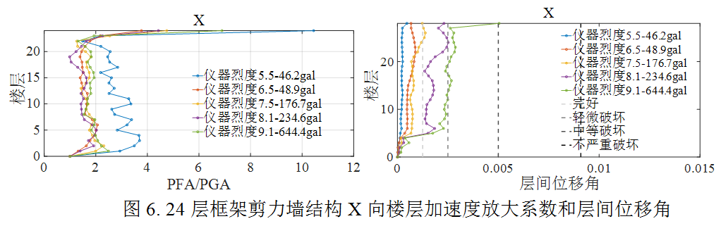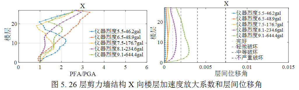 為評(píng)估結(jié)構(gòu)在此次地震動(dòng)的破壞水平,選取了實(shí)際記錄到的儀器烈度對(duì)應(yīng)的5組強(qiáng)震記錄,開展了針對(duì)當(dāng)?shù)乜拐鹪O(shè)防烈度為8度0.2g的5棟典型鋼筋混凝土結(jié)構(gòu)房屋的非線性動(dòng)力響應(yīng)時(shí)程分析。5棟結(jié)構(gòu)包括1棟框架、2棟框剪及2棟剪力墻,結(jié)構(gòu)基本周期從小到大分別是0.47s,0.78s,0.84s,1.5s和2.5s。分析主要給出了對(duì)結(jié)構(gòu)安全和建筑內(nèi)人員體感影響明顯的層間相對(duì)位移和樓層加速度響應(yīng)結(jié)果。表2為選取的地震動(dòng)記錄相關(guān)信息。圖1為選取的5棟結(jié)構(gòu)的有限元模型示意圖,圖2至圖6為五棟結(jié)構(gòu)的初步分析結(jié)果。