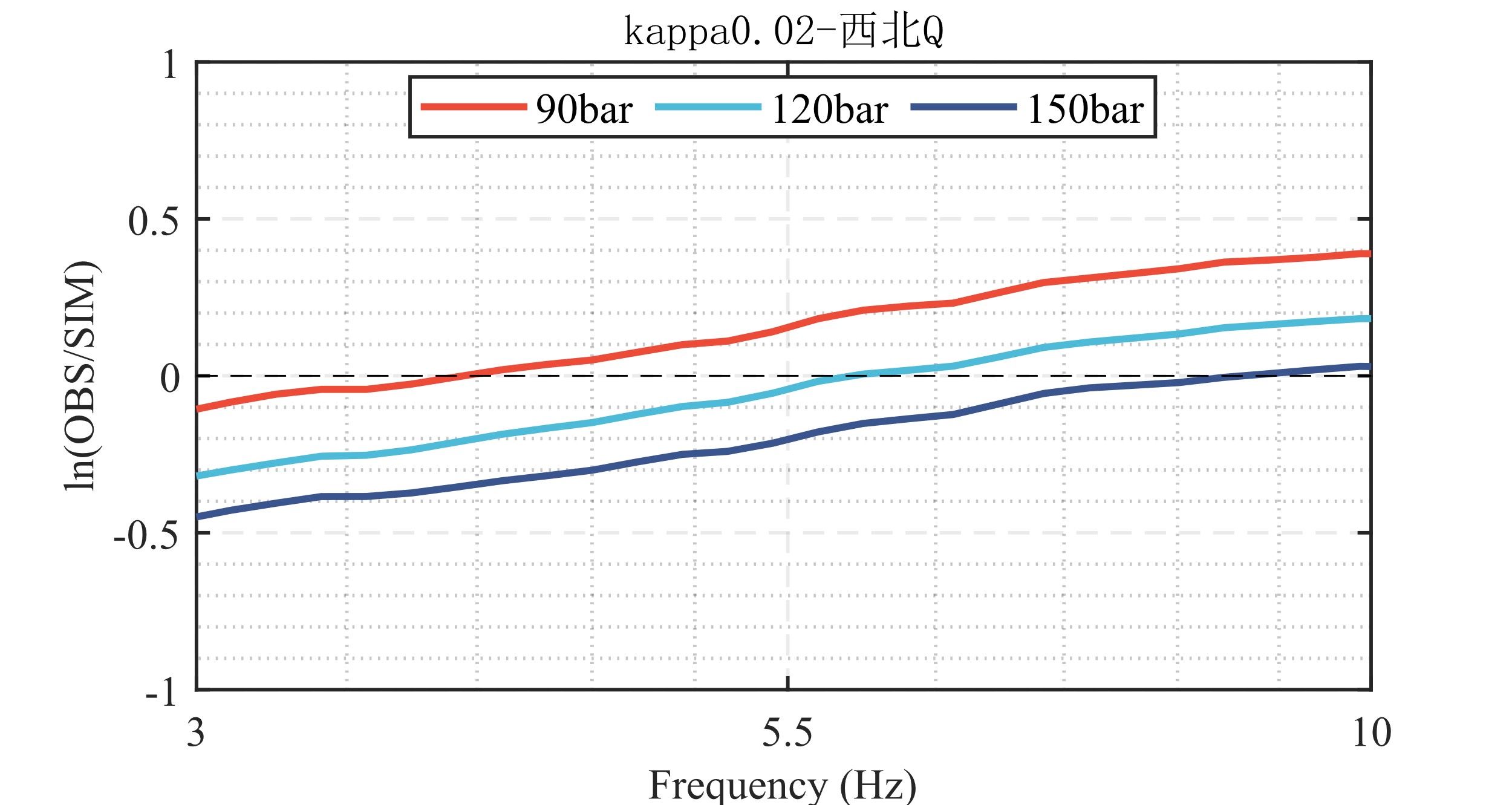 針對此次地震記錄呈現的高異常峰值,從震源機制分析其形成機理。以往研究和震害調查經驗表明,造成高異常峰值的主要原因包括:震源的高應力降及特殊的地下介質屬性。基于以往研究工作,我們分析了此次地震震源的應力降。初步結果表明,此次地震震源區對應的平均應力降為90-150 bar左右(見圖4),高于全球歷史地震平均應力降水平(30 bar),這與謝志南課題組前期估計蘆山主震逆沖型地震主破裂區平均應力降水平(90-150 bar)大致相當。因此,此次地震觀測到的高異常峰值現象,從震源的角度可以初步歸結為發震震源的高應力降。