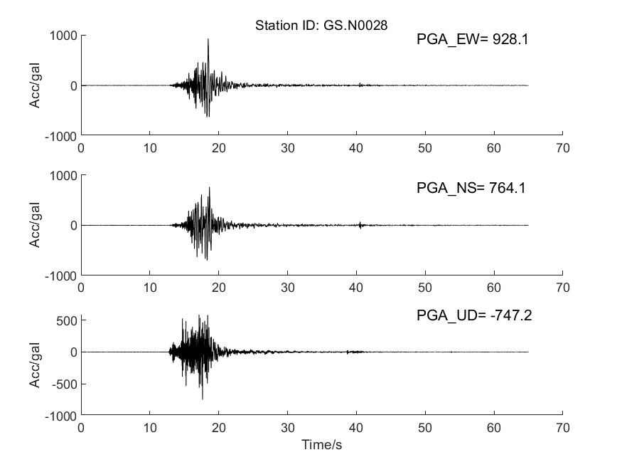 圖7 GS.N0028臺加速度時程曲線圖
