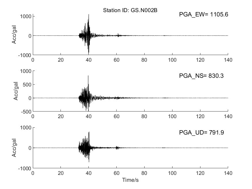 圖10 GS.N002B臺加速度時程曲線圖