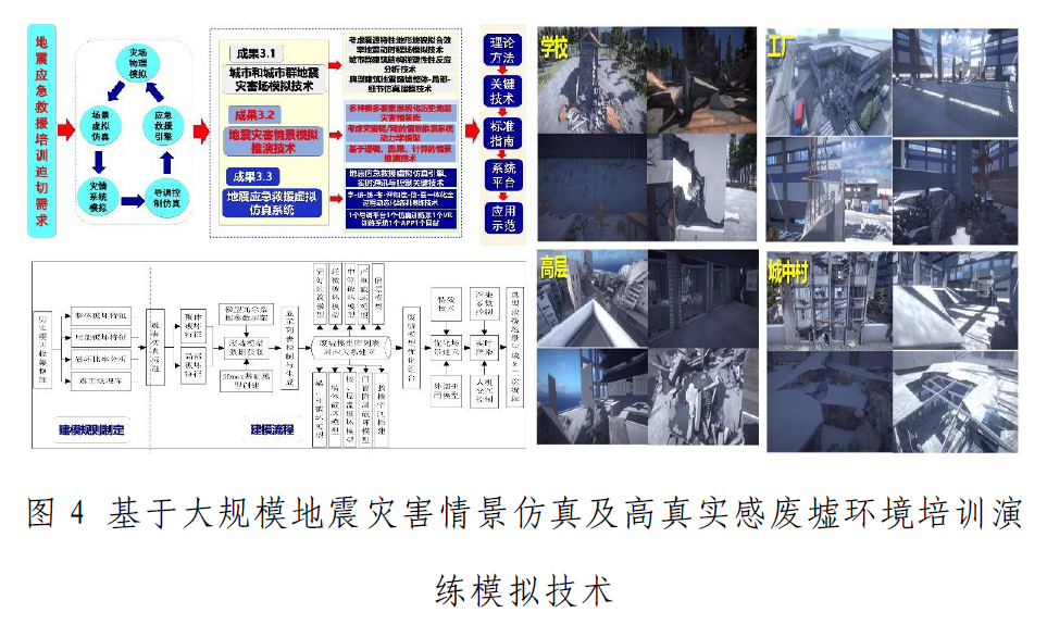 項(xiàng)目研發(fā)了考慮“學(xué)-研-練-考-評(píng)”和“搜-救-醫(yī)一體化”全過(guò)程動(dòng)態(tài)化培訓(xùn)演練技術(shù)、地震應(yīng)急救援虛擬仿真引擎、實(shí)時(shí)通訊與控制等關(guān)鍵技術(shù),形成了單機(jī)、網(wǎng)絡(luò)和手機(jī)端一整套的大規(guī)模救援現(xiàn)場(chǎng)場(chǎng)景仿真與搜救培訓(xùn)演練模擬技術(shù)系統(tǒng),成果總體達(dá)到了國(guó)際先進(jìn)水平,在提升地震應(yīng)急指揮能力、地震應(yīng)急救援能力、地震災(zāi)害風(fēng)險(xiǎn)認(rèn)知能力等方面具有廣泛的應(yīng)用前景。