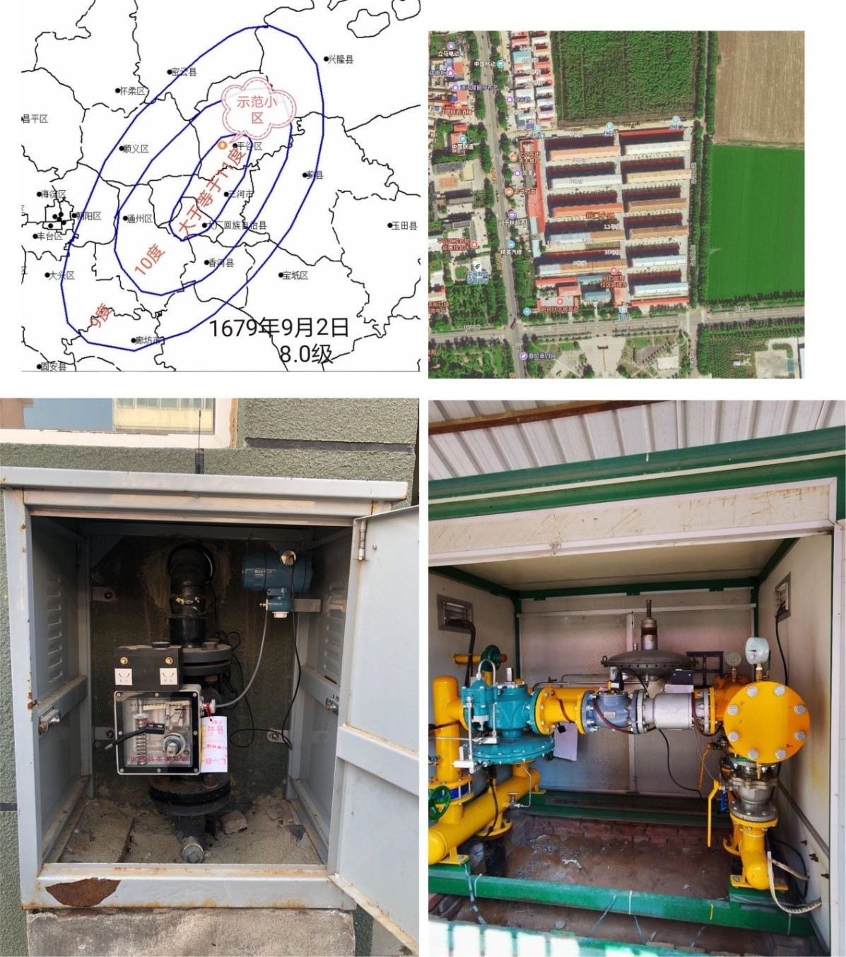 圖3 項目研發(fā)的燃氣地震緊急處置系統(tǒng)及其在北京平谷某小區(qū)進行示范應(yīng)用情況