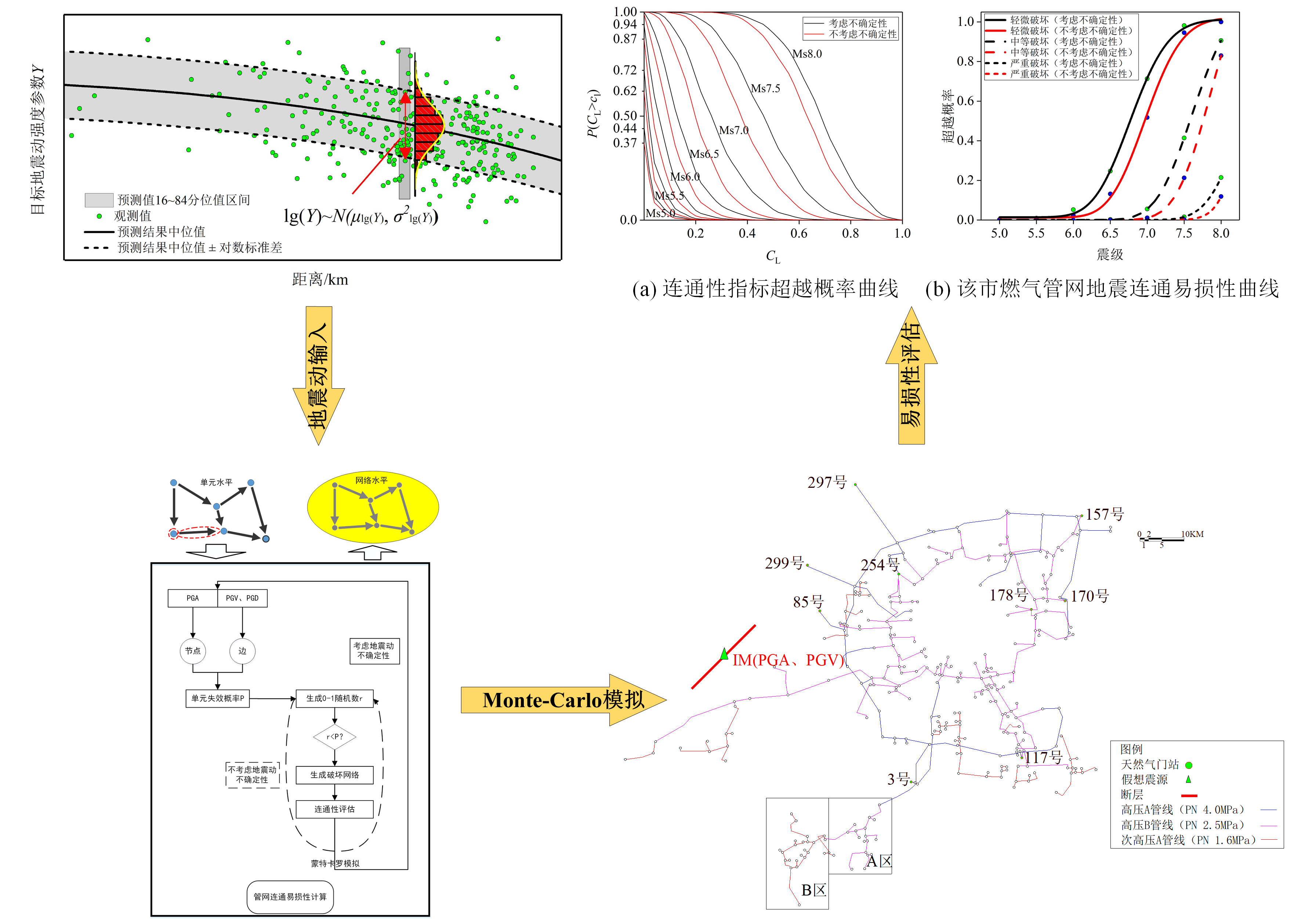 發布時間: 2022-07-29 點擊數量:6928(1)以地震動預測方程(GMPE)作為燃氣管網地震動輸入依據,同時采用正態分布抽樣模擬隨機誤差變量的分布以體現地震動的不確定性,從單元失效擴散至網絡失效,給出了基于Monte-Carlo模擬方法的城市燃氣管網地震連通易損性分析流程。并以我國華北某城市為例,應用該流程對該市燃氣管網的地震連通易損性進行了分析,驗證了該流程的適用性,同時對網絡地震動輸入時是否考慮地震動不確定性對連通易損性評估結果的影響進行了對比研究,結果表明:地震動不確定性在評估城市燃氣管網的抗震能力時有削弱作用,不可忽視其對結果的影響。銜接該流程可進一步完善燃氣管網抗震韌性定量評估方法。相關技術細節可查閱發表在《哈爾濱工業大學學報》上的論文。