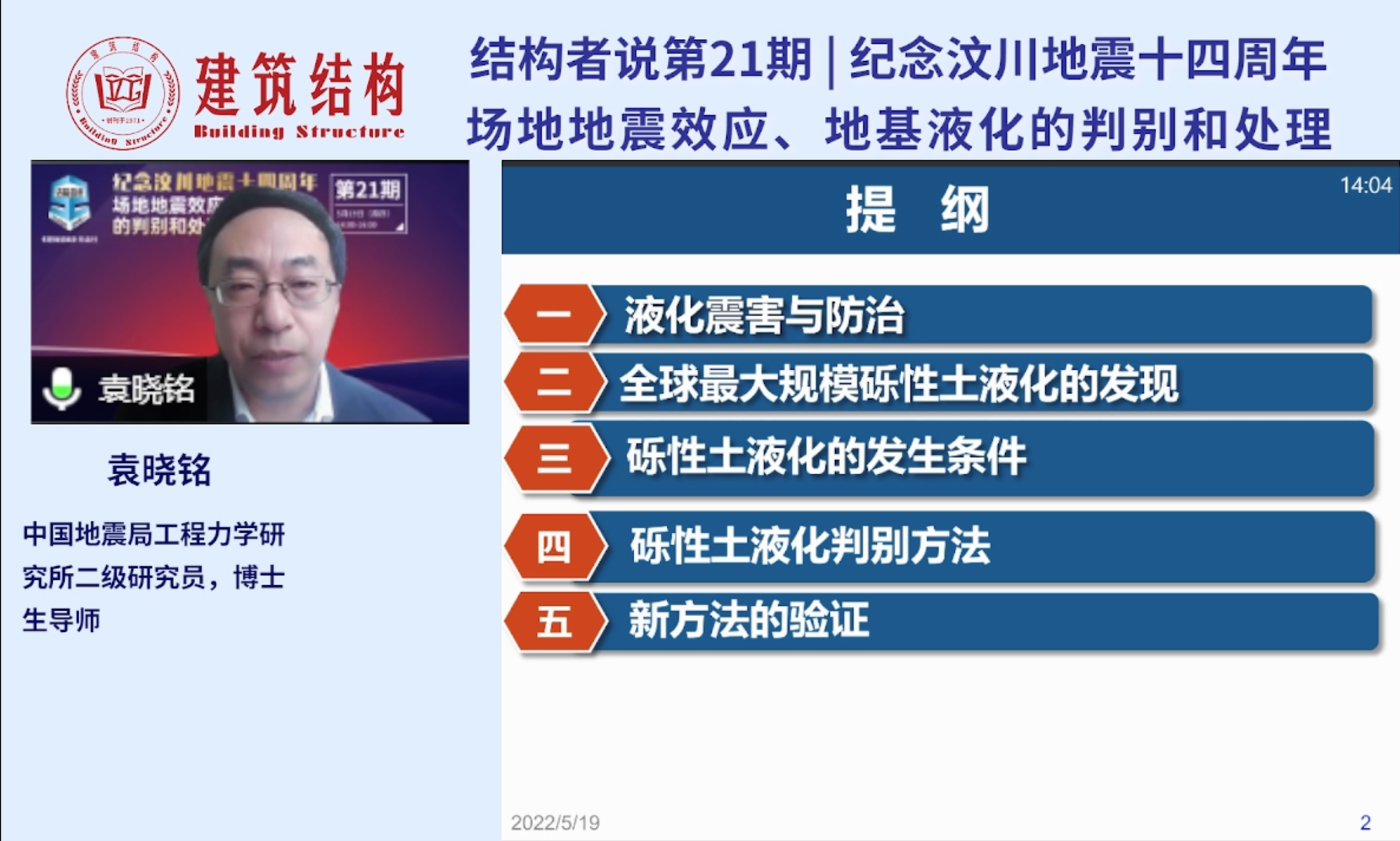 發布時間: 2022-05-24 點擊數量:3869袁曉銘研究員的報告中,介紹了2008年汶川大地震中發生的全球最大規模的礫性土液化及震害現象,解釋了礫性土液化的機理和觸發條件;介紹了具有中國特色的礫性土液化判別方法以及通過國際合作對新方法的驗證結果。報告面向一線工程技術人員,采用深入淺出的方式進行講解,受到工程技術人員的歡迎。報告后的互動提問環節,袁曉銘研究員在線回答了聽眾提出的關于“學校和醫院提高一度進行液化設防的必要性”、“礫性土和砂土液化判別方法的差別”、“不液化和不考慮液化概念的區別”等一系列問題。