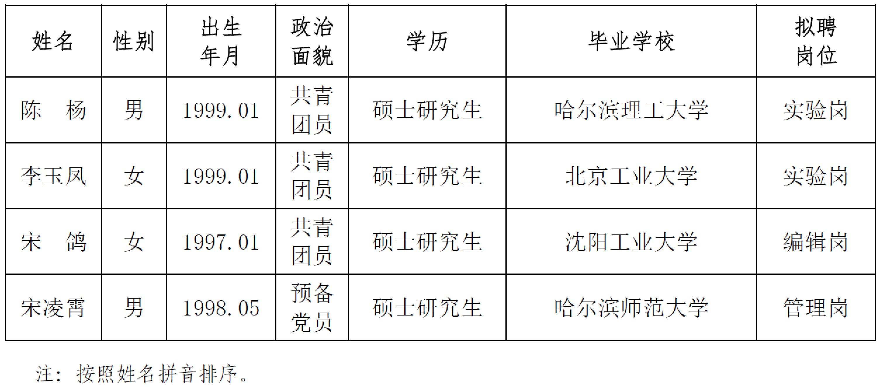 發布時間: 2024-05-14 點擊數量:12773根據中國地震局《關于貫徹執行〈事業單位公開招聘人員暫行規定〉的通知》文件精神和我所用人計劃,經公開發布招聘信息、資格審查、面試等程序確定擬錄人員。現將擬錄人員相關情況公示如下,公示期7個工作日,期間如有異議請與中國地震局工程力學研究所人才資源部或紀檢室聯系,以個人名義反映情況的領署真實姓名,以單位名義反映情況的須加蓋公章。